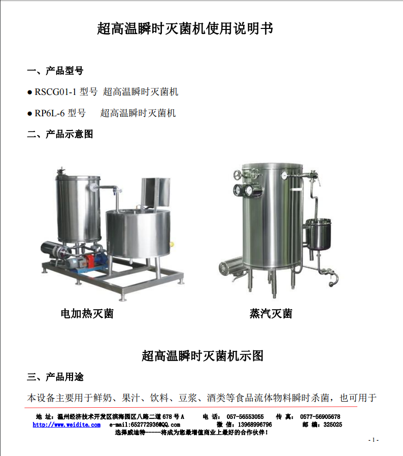 超高溫瞬時滅菌機 UHT的參數: