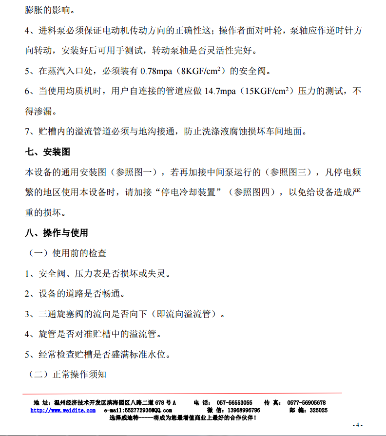 (3)使用蒸汽壓力: < 0.78 mpa