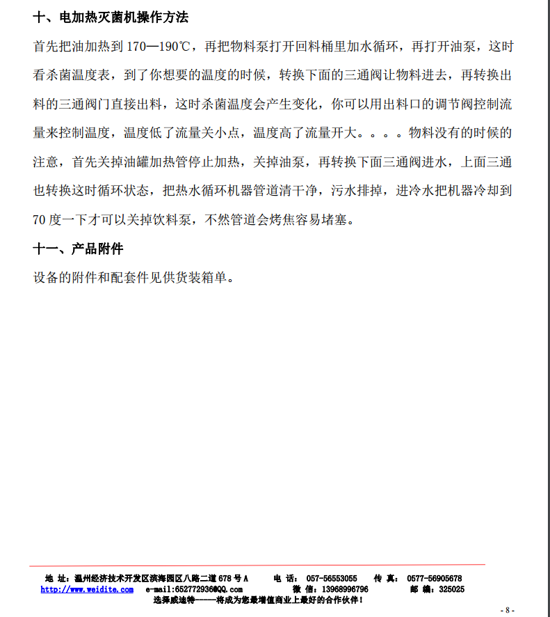 滅菌機與物料接觸部分,都采用不銹鋼制造,雙套盤管用專用機床加工,同心度高。內表面光潔,從而使液料通過雙套盤管時形成均勻的液層,加熱十分均勻。