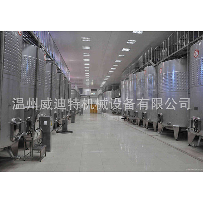 不銹鋼葡萄酒制冷發酵罐在其外壁的上部中部裝有冷卻套(熱交換器),以使冷卻液在該套中循環,該罐壁用作冷卻的熱交換表面。它在外套中流動。為了通過使外套中的冷卻液湍流來增強熱交換效果,將外套的表面點蝕或在外套上設置螺旋引導板。夾套型冷卻區與內部冷卻型相比具有較低的熱交換效率,允許均勻的熱交換,克服了內部冷卻型的各種缺點,并且在實際生產中被廣泛使用。