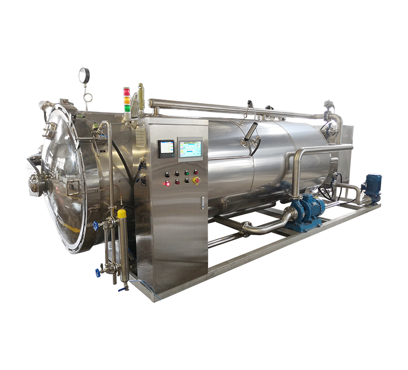 該設備由鍋體、鍋蓋、開啟裝置、鎖緊模塊、安全聯鎖裝置、軌道、滅菌框、蒸汽噴管及若干管口等組成、鍋蓋密封采用充氣式硅膠耐溫密封圈,密封可靠,使用壽命長。具有受熱面積大,熱效率高、加熱均勻、液料沸騰時間短、加熱溫度容易控制等特點、殺菌鍋主要用于食品行業、醫藥等各領域。